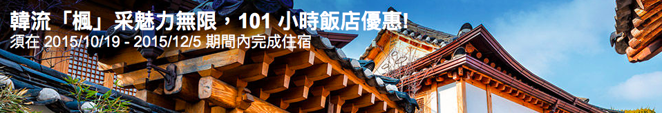 - 入住優惠時間: 2015/10/19 – 2015/12/5 期間內完成住宿