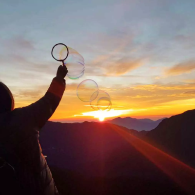 專車上山定點瞭望日出美景,欣賞日出的同時,等待2022年的第一道曙光劃破天際、照亮綿延雲海,吹出晶瑩泡泡入鏡,最夢幻的方式開啟嶄新的一年。