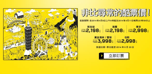 4月9日早晨9時至2014年4月11日23時59分,台北飛首爾、東京來回機票只要…