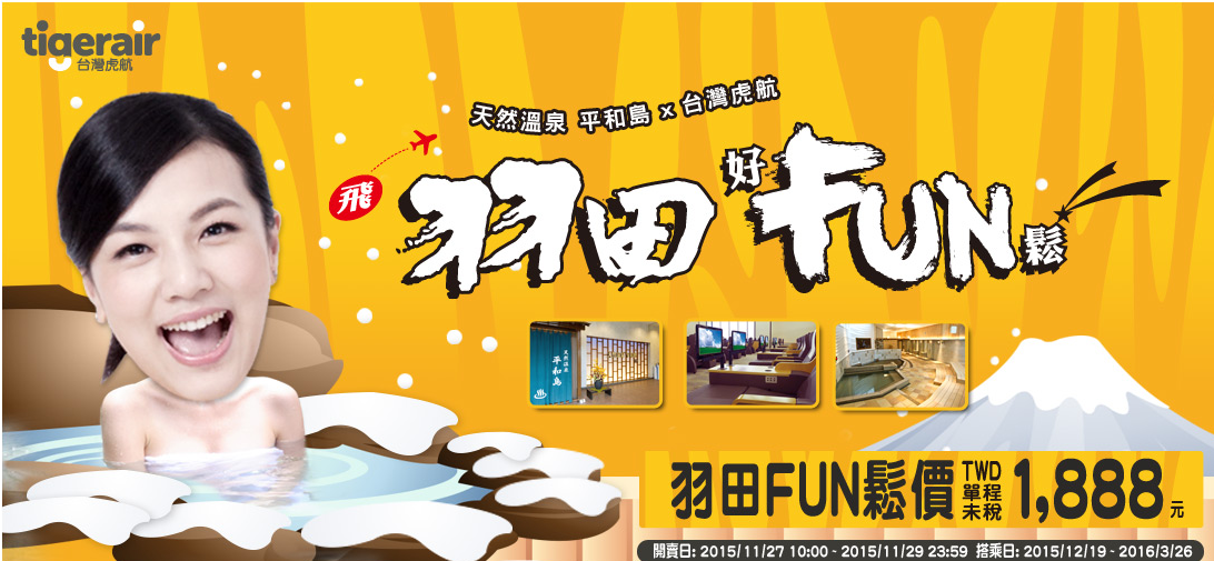 台灣虎航自12月19日開闢桃園-東京羽田航線,並與日本天然溫泉平和島合作,除了享…