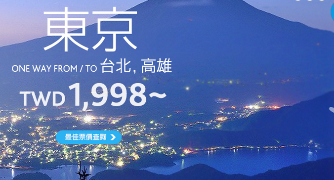 台灣虎航週年ONE歲 全航線 單程未稅 TWD 926元起(澳門來回未稅) …