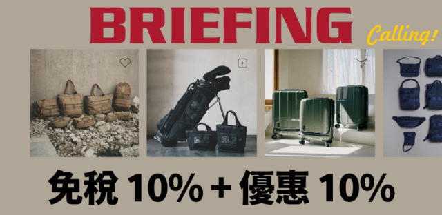 【BRIEFING優惠券】最新日本 BRIEFING 免稅 10%+10% 折扣優惠券/折價券/Coupon(2026最新)