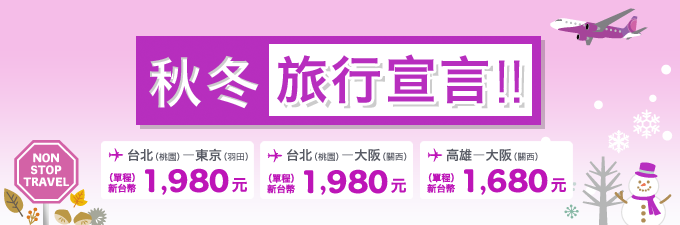 Peach秋冬旅行宣言!!現正促銷中!! 飛往關東地區單程最低只要1,980元,…