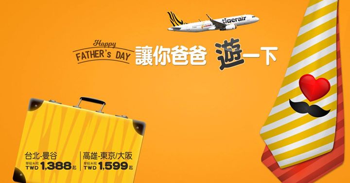 【父親節快樂! 帶你爸爸遊一下吧!!】 台灣虎航特別推出父親節優惠 台北 – 曼…