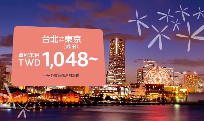 愛你呦七夕情人促銷 台北航線限定! 飛東京單程未稅最低TWD1,048! 8/…