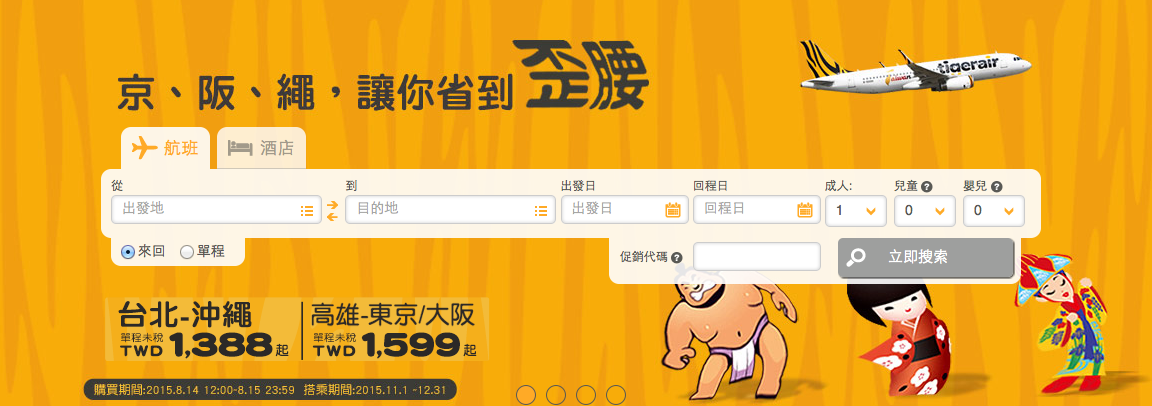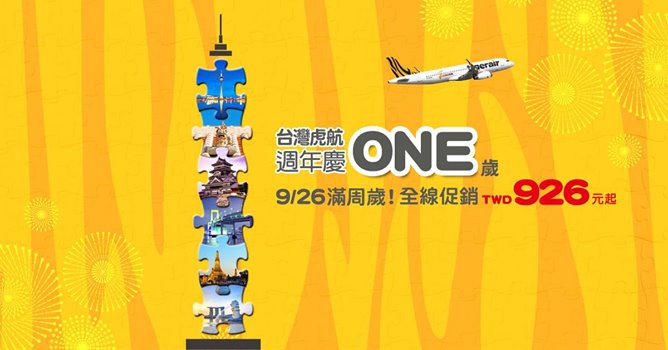 台灣虎航週年ONE歲 全航線 單程未稅 TWD 926元起(澳門來回未稅) …