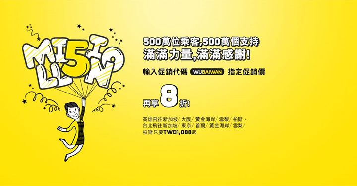 狂慶酷航乘客突破500萬人,酷航特別呈獻為期5天的瘋狂促銷 活動網頁:http:…