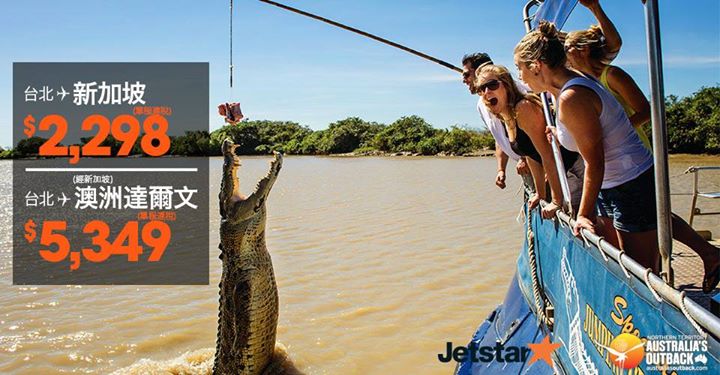 即日起至11月11日,單人單程台北新加坡新台幣2,298起,經新加坡去澳洲達爾文(北領地的首府)新台幣5,349起。