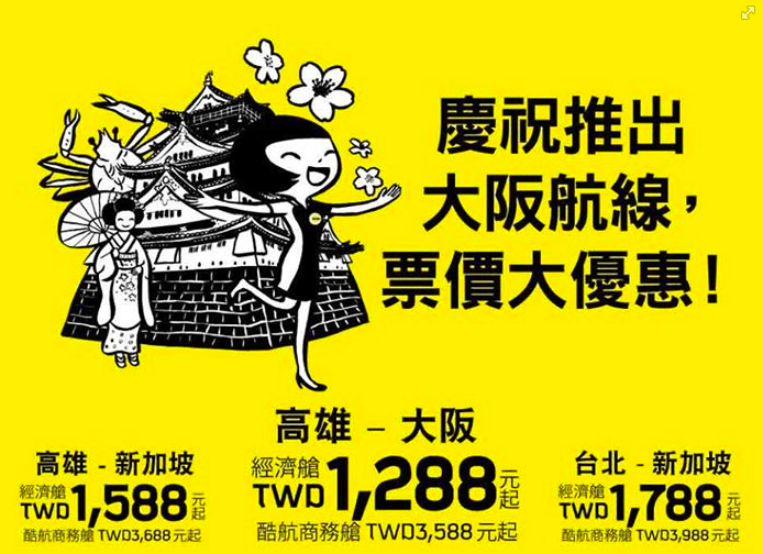 酷航™高雄-大阪首航開賣,只要TWD1,288! 官網訂票: http://bi…